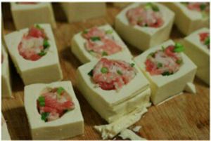 豆腐挖一个洞,塞满肉末