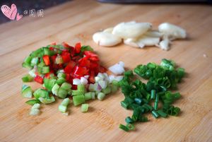 青椒,红椒,葱花,大蒜