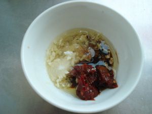 郫县豆瓣酱一勺,与半茶匙白砂糖搅拌均匀备用。
