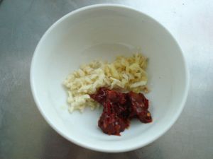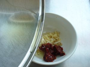 碗里放入姜末,蒜末,郫县豆瓣。