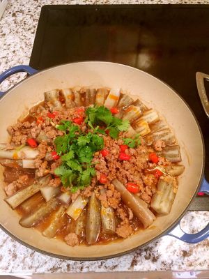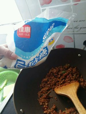肉糜断生后可依各人口味再适当加入白砂糖。(有糖尿病或者血糖高的朋友这道菜是可以完全不加入糖的,或者用罗汉果苷代用糖)