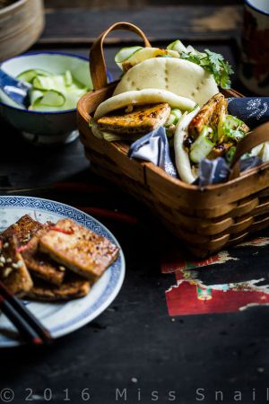 包子里抹上美乃滋,夹块豆腐、沙拉和花生,美滋滋的享用吧。