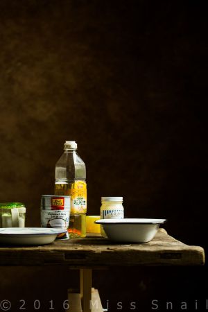 期间调料汁:一小勺蚝油、少许盐、一小勺老抽、蒜苗、少许生粉、少许鸡精,加水调汁备用;