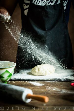 先制作荷叶包,将面粉过筛,面粉里加点糖、用温水把酵母化开。