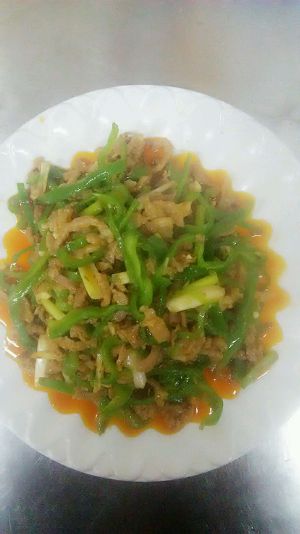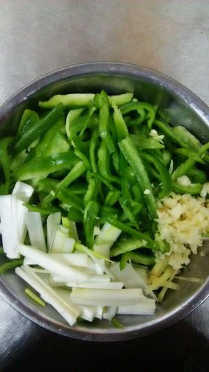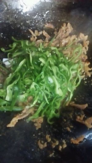 肉丝加盐,料酒,生抽,糖,淀粉,调味。 青椒切丝