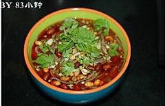 撒上熟花生米碎和酥炸黄豆,香菜末即可。