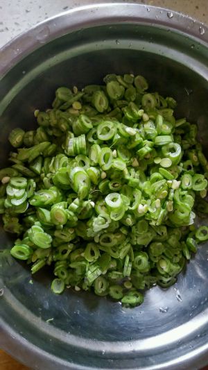 豆角切碎,也可以选择别的自己喜欢的蔬菜代替