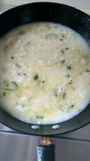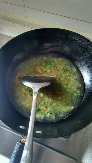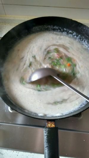 在加热过程中可以不断用勺子搅拌,因为比较容易糊锅底,大概来过5分钟左右的样子就可以了,尝一下味道,可以加鸡精来调味,调好就可以出锅了