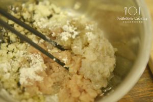 上述各料加腌料拌匀成馅料,放置10分钟。