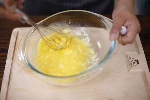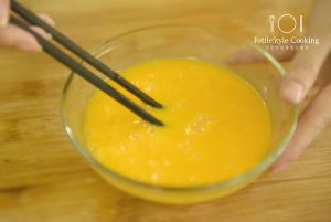 鸡蛋搅打均匀,加少许淀粉,过两百遍筛;