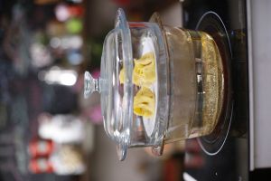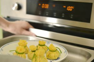 将石榴鸡放入蒸箱中100度蒸制10分钟左右取出