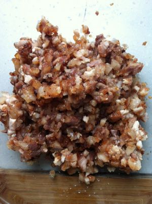 煮好的叉烧馅放凉。