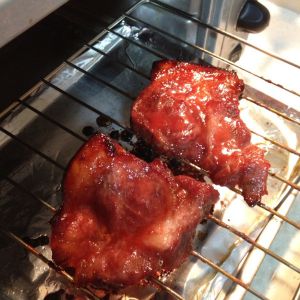 烤箱预热,200度烤半小时左右。中途两次翻面,涂抹剩余酱汁。