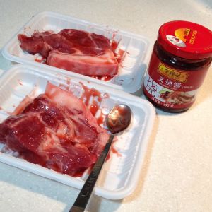 3大勺李锦记叉烧酱,腌制6小时,翻面涂匀。