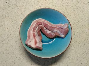 五花肉用叉子扎些小洞,以便调料入味。