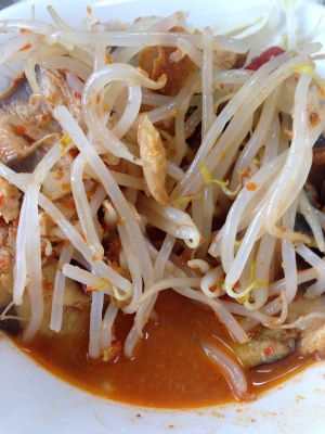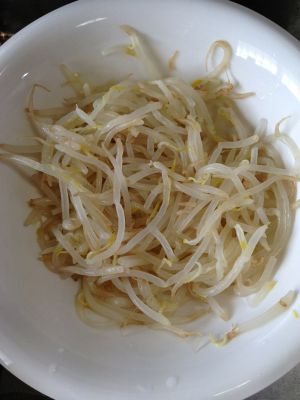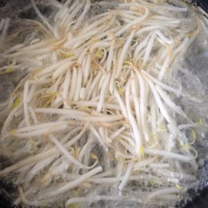 煮十分钟。倒入到豆芽上。把刚才 盛出的辣椒放在鱼上。锅里加油烧热。倒到碗里。听到啪啪的响声。