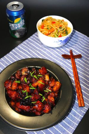 出锅撒上葱花,一道喷香可口的红烧肉就好了。