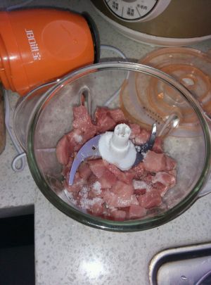第一步是将瘦肉洗净剁碎成肉沫。然后加入适量葱沫、盐、鸡精、胡椒粉、淀粉拌匀