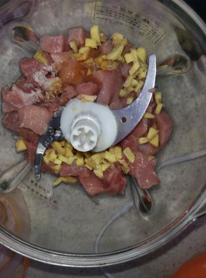 切小块 加少许盐和姜末 用绞肉机绞成肉末