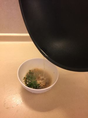 寸热淋入碗中,香气四溢,待碗温度稍凉时加入,醋,白糖少许,盐适量,香油少许,胡椒粉少许,辣椒由多点,拌匀待用