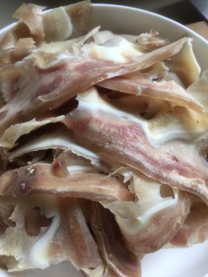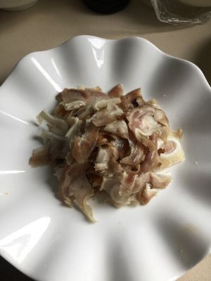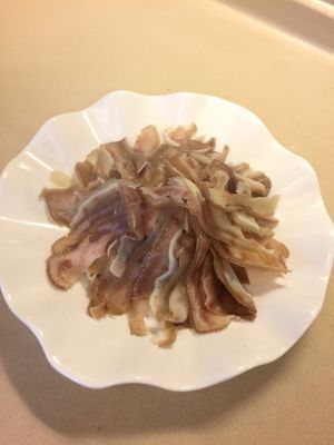 猪耳朵晾冷切片,一定要晾泠,容易成形。