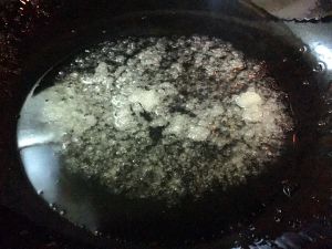 锅中热油,倒入适量冰糖,炒糖色。