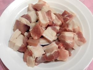 五花肉切块,大小根据自己喜好就可以,大块小块都行。