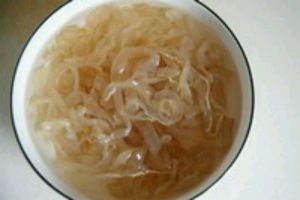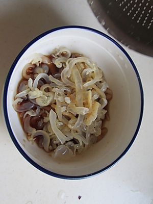 木耳、海蜇放进清水中浸泡和清洗,用清水洗两遍, (这时候你尝尝,和果冻差不多的口感,啥味道也没有)。
