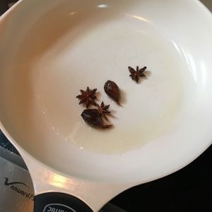 再加入少量生抽,料酒,水,以及香叶、茴香。