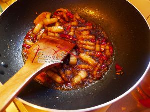 加入红烧肉调味料,翻炒均匀