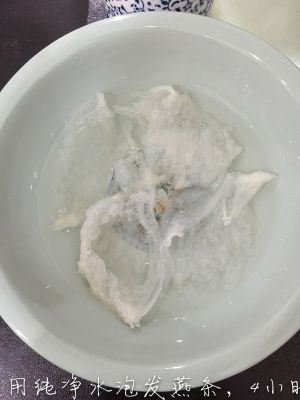 图为,泡发了4个小时的燕窝,结构已经松了。