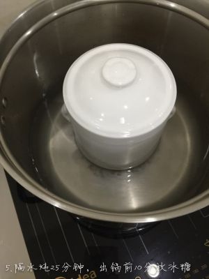 放在锅里隔水炖煮40分钟即可。快好10分钟前放一小块冰糖,甜度根据自己的喜好!