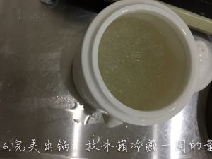 看燕窝拉丝。等凉了,放冰箱冷藏
