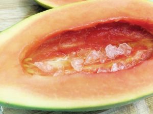 第二种没有燕窝的做法,选比较熟的木瓜,去籽,对半切,去皮,切粒状