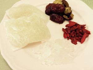 清水依次加冰糖、枸杞和红枣煮至滚,放一份量燕窝(一个一包皆可),沸腾约5分钟,装碗。