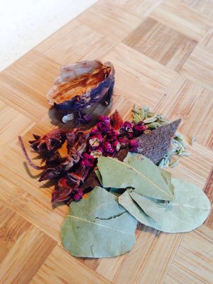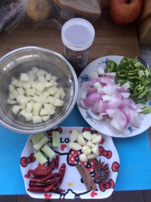 备菜:土豆切块洗净、青椒切小片洗净备用;备料:各种香料、花椒多一点、小米椒4个、干红椒4个,大葱3小段,姜切片。
