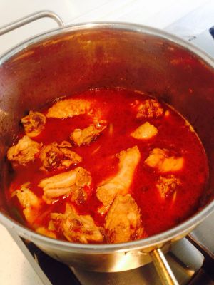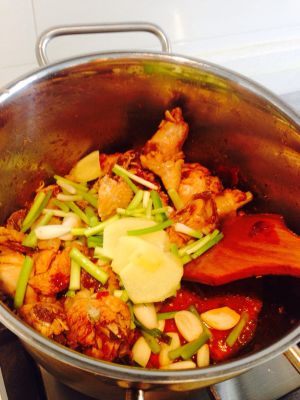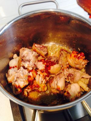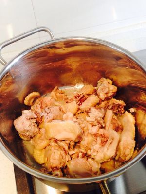 加入热水,莫过鸡块就可以了,放入八角,酱油,糖