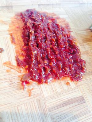 这时鸡肉基本没有水份,把豆瓣加入,其实应该先炒豆瓣,但豆瓣有水分,我就嫌他每次会溅的到处都是,所以,我这会才放,也差不太多