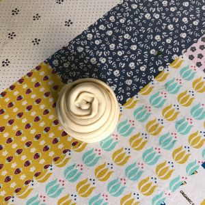 面发好后。揉匀。分成几小团。 用擀面杖逐个擀平。抹上油酥。 卷起。卷成长条后。围成圆圈。压扁。用擀面杖逐个擀平。上锅就可以了。