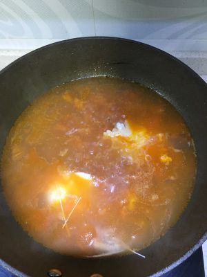 放上番茄鸡蛋汤汁,撒上葱花即可