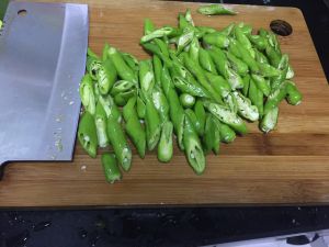 猪肉切片,生姜大蒜切沫,青椒切条,木耳提前一夜发好然后仔细洗净切条,小辣椒切沫,小葱切断