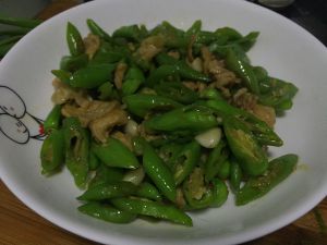 青椒炒肉新鲜出炉,香,好香。出锅前加点味精。