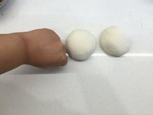 醒好的面团略揉一揉,然后揉成比拳头小一圈的小面团~