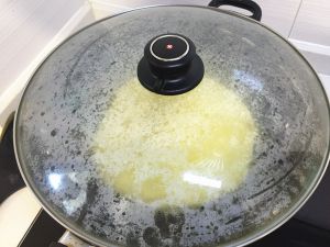 2分钟后,将锅盖掀开,用铲子在饼上敲一敲,这样能让饼更松软~