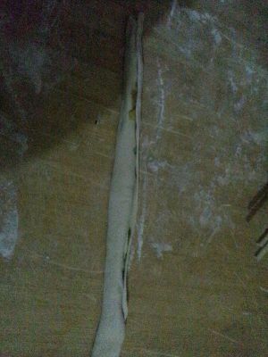 我们将面片这样叠起来,左右交叠在一起,一直叠完。