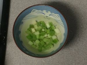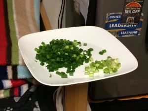 放一小部分葱花和葱白在碗中,淋上热油,葱香四溢