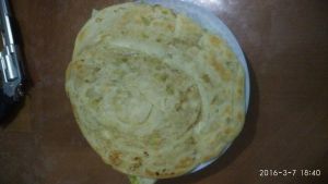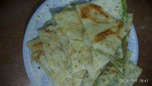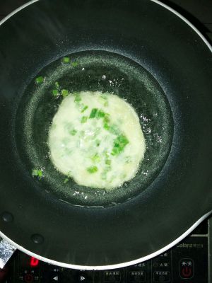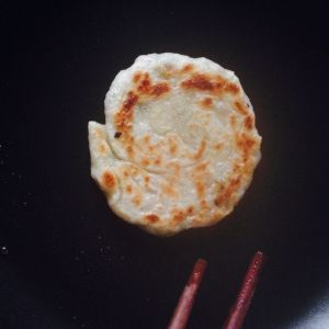 平底锅放入少许油,等待油热,放入擀好的饼