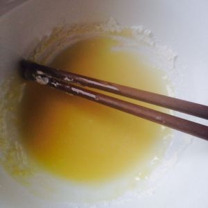 将适量橄榄油加热后,倒入同等量的面粉中拌匀,作为油酥备用