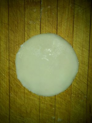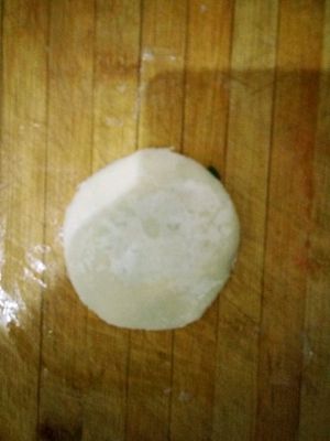 尖头朝下摁扁,擀圆。