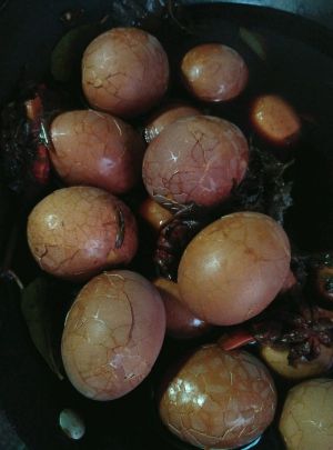 煮熟,关火,用勺子敲碎蛋皮,继续小火煮15分钟。